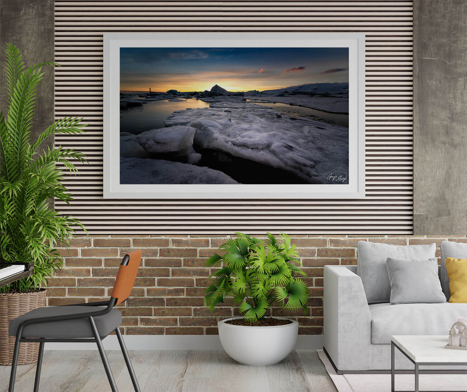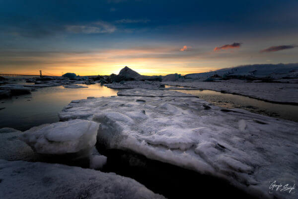 Ice Roads – Breathtaking sunset shot from lake Jokulsarlon in Iceland.